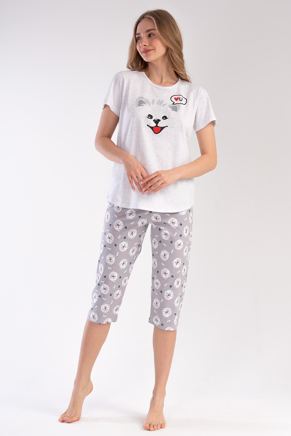 Woman Little Dog Pattern Capri Set