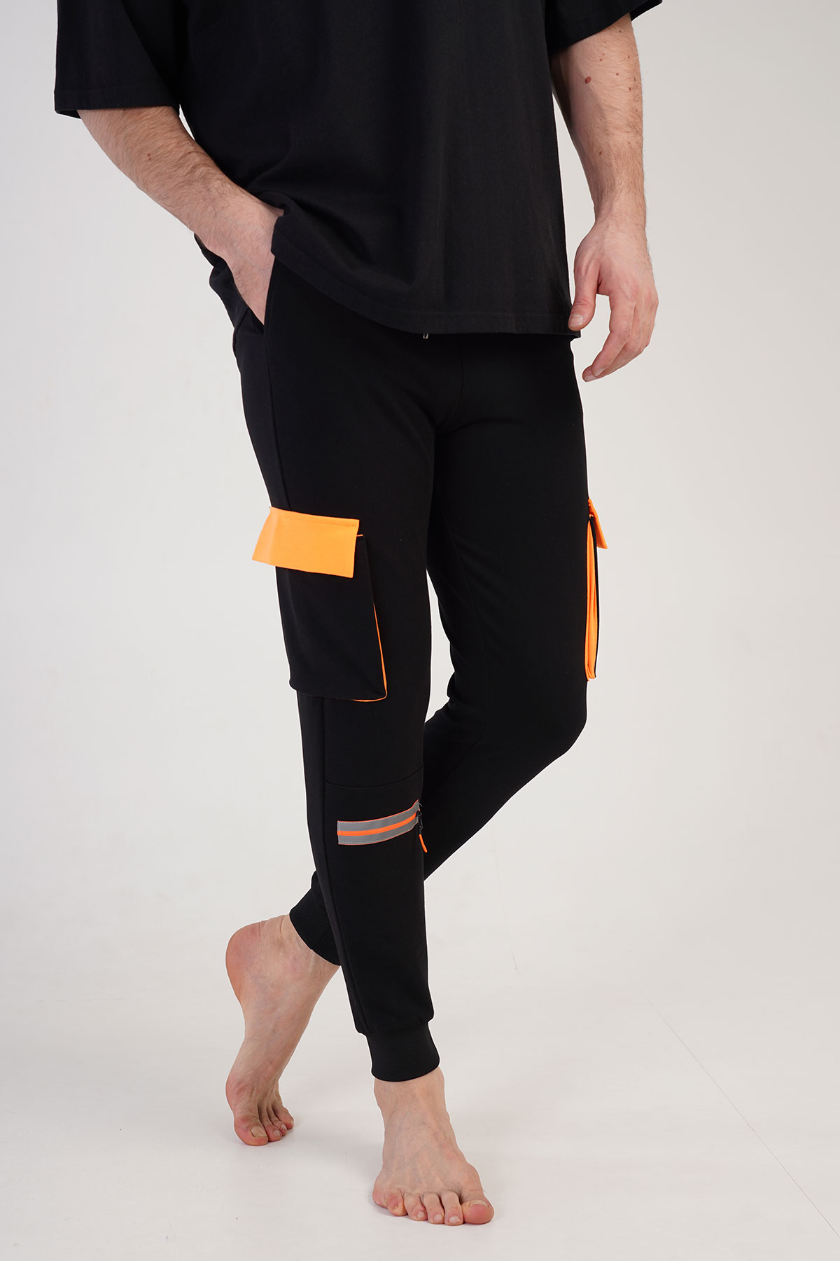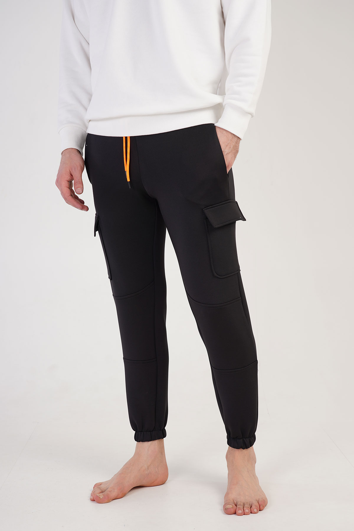 Man Oversize Pocket Detail Black Tracksuit Pant